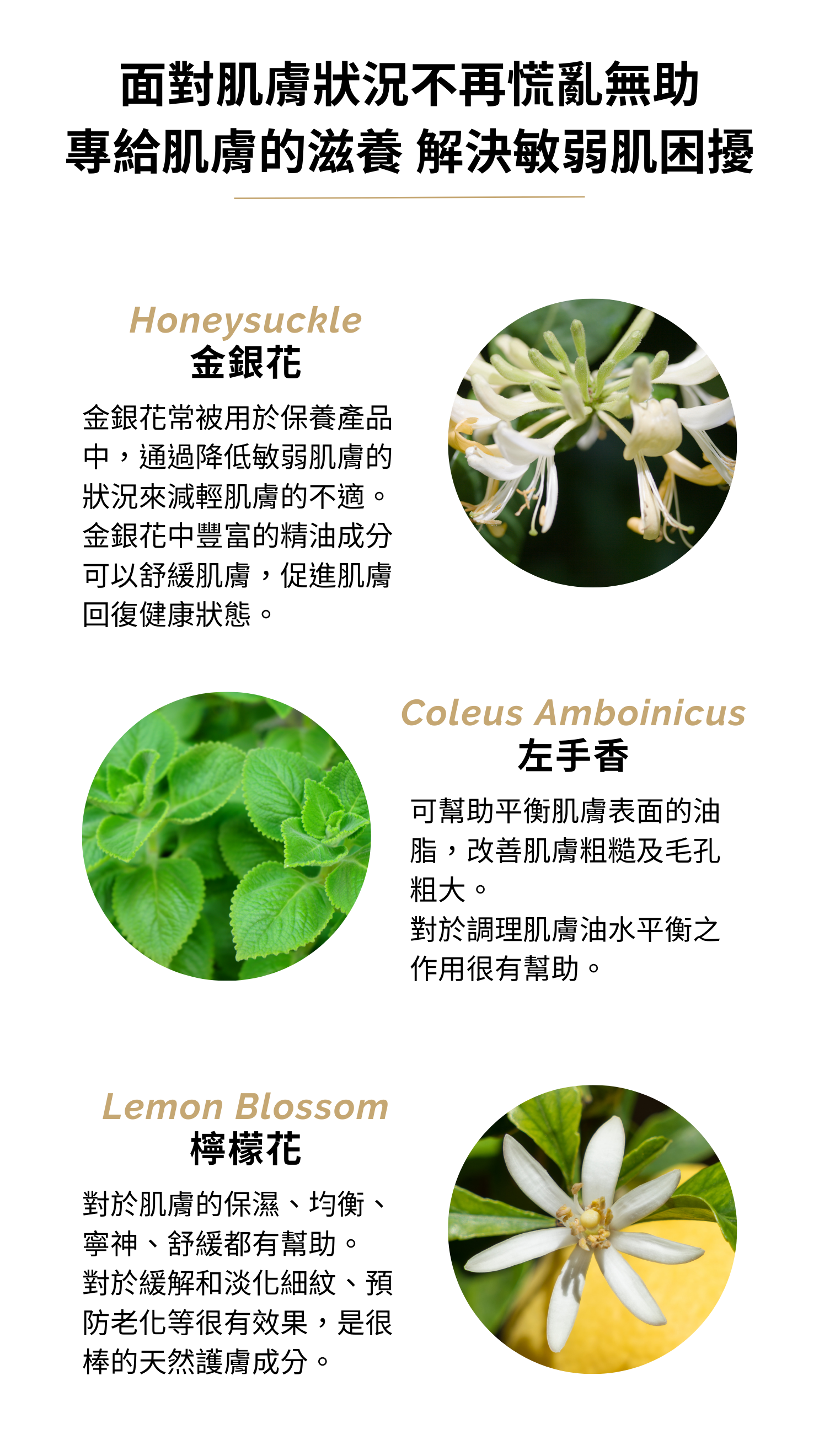 嚴選天然柔敏精華,舒緩肌膚不適。