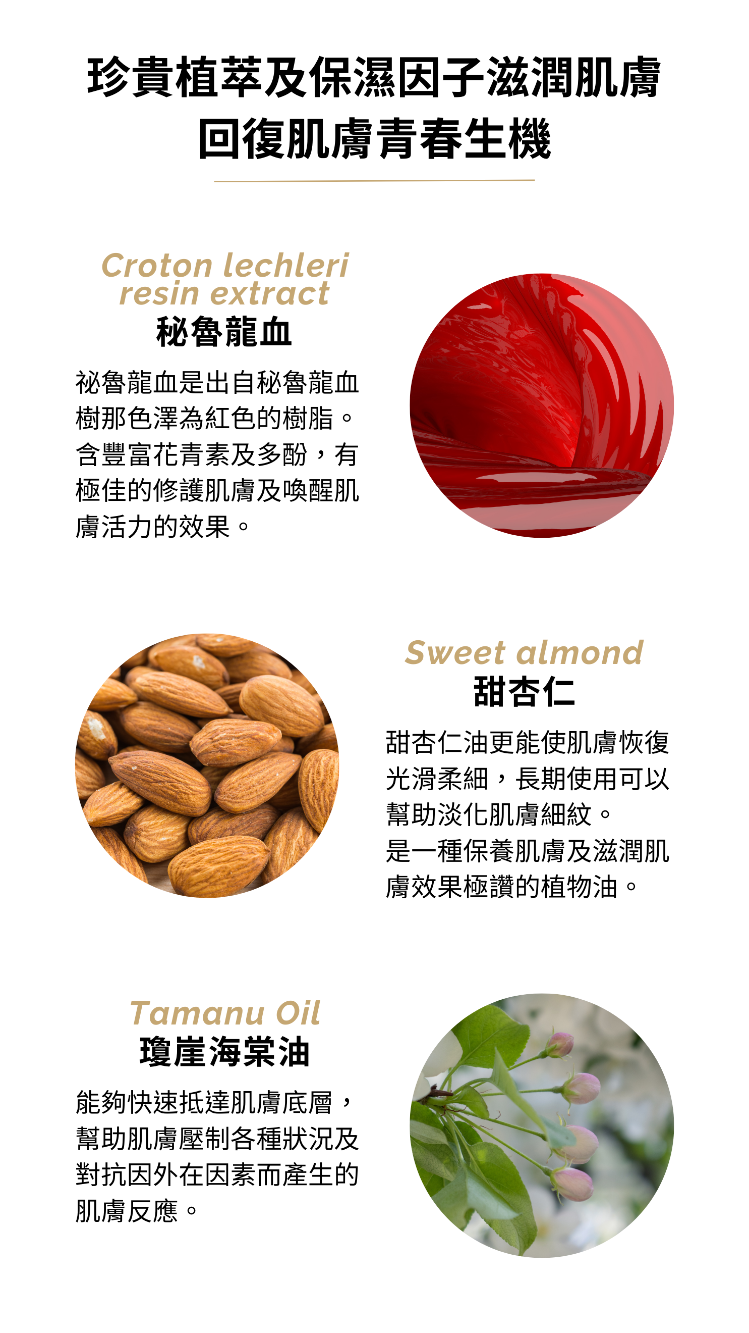 對抗肌膚老化、調理肌膚紋路、使肌膚回復柔順平和的線條。