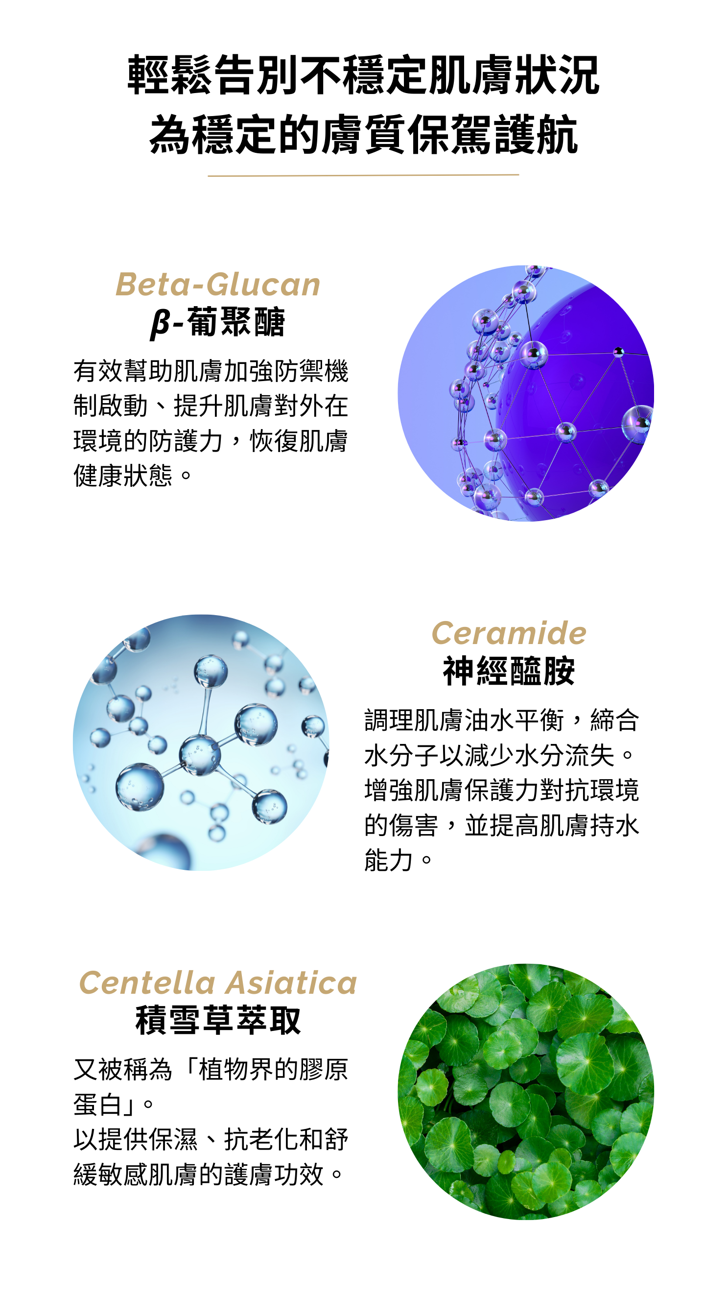 進階舒緩肌膚不適、維持健康美麗的肌膚。